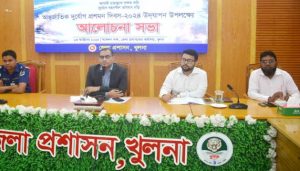 খুলনায় আগামী প্রজন্মকে সক্ষম করি, দুর্যোগ সহনশীল ভবিষ্যৎ গড়ি এই প্রতিপাদ্য নিয়ে আন্তর্জাতিক দুর্যোগ প্রশমন দিবস উপলক্ষে ১৩ অক্টোবর রবিবার সকালে খুলনা জেলা প্রশাসকের সম্মেলনকক্ষে আলোচনা সভা অনুষ্ঠিত হয়েছে। উক্ত অনুষ্ঠানে প্রধান অতিথি হিসেবে উপস্থিত ছিলেন, জেলা প্রশাসক মোহাম্মদ সাইফুল ইসলাম।